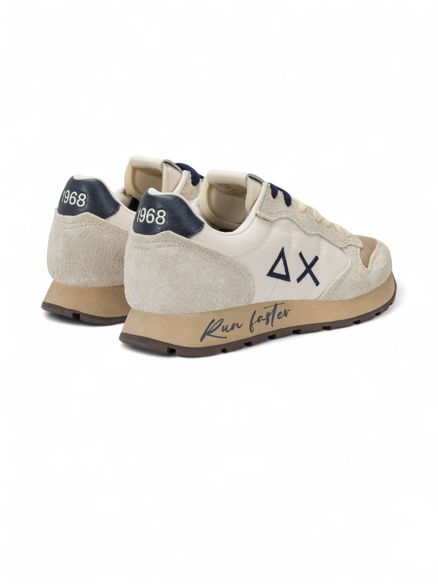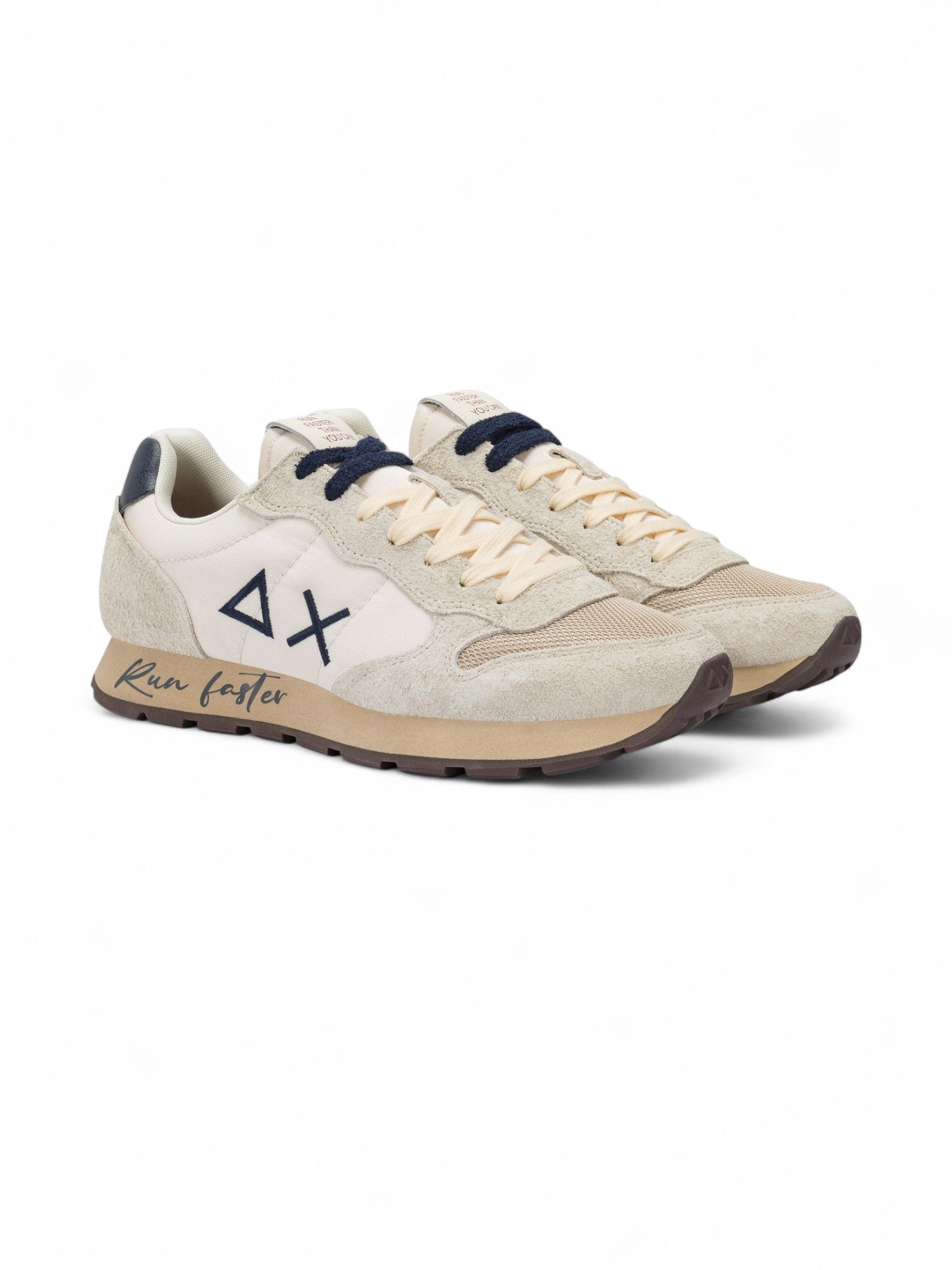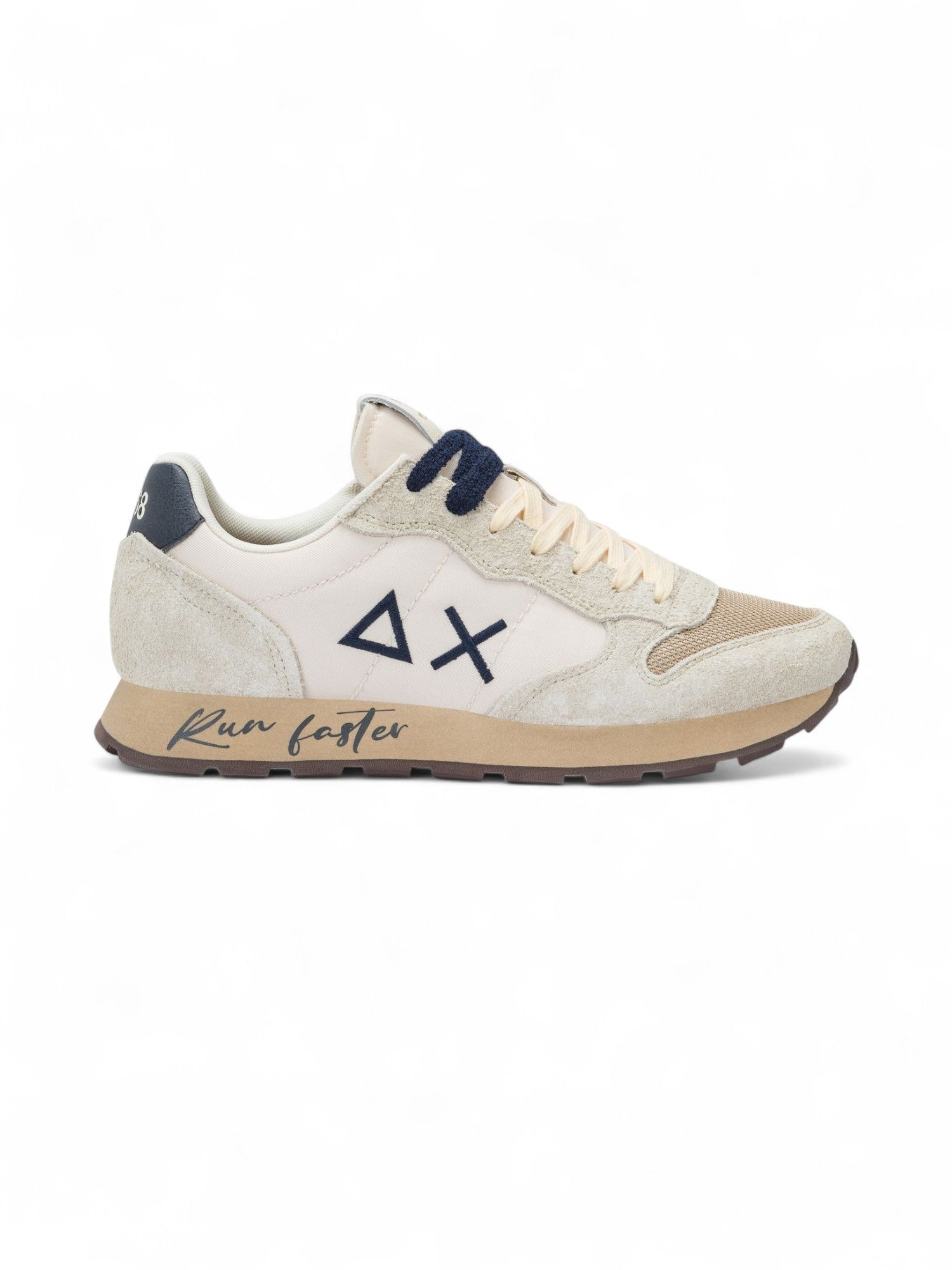 La Sneaker Tom Vintage da uomo di SUN68 unisce design classico e fascino autentico, reinterpretando l’iconica linea del brand con un elegante effetto used e il lettering "Run faster" sulla suola.