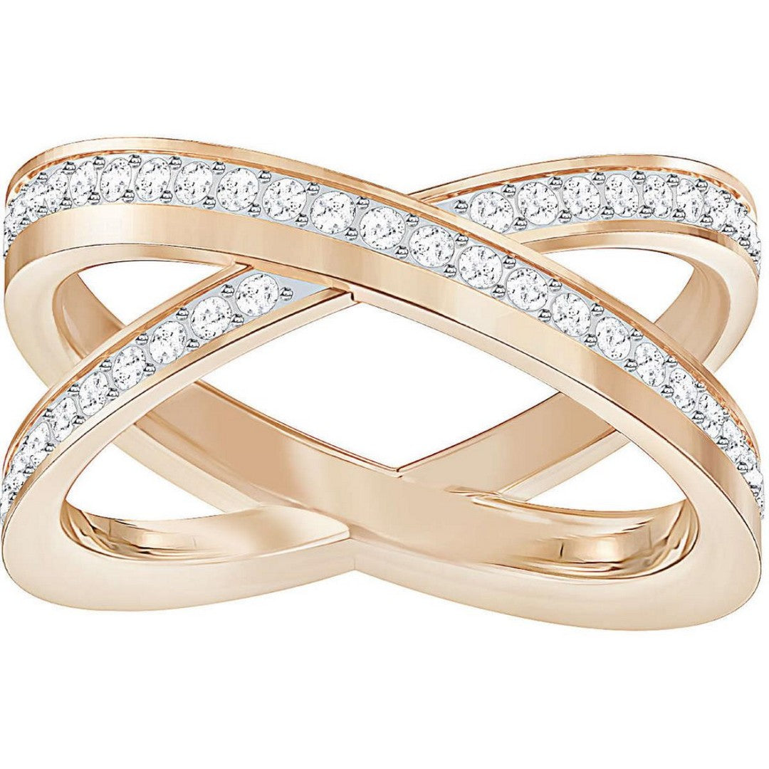 Anello da donna di Swarovski dalla forma stilosa ed elegante. L'anello è rappresentato da un incrocio reso brillante da una serie di pietre Swarovski che lo compongono. Realizzato in lega di pregiati metalli anallergici.