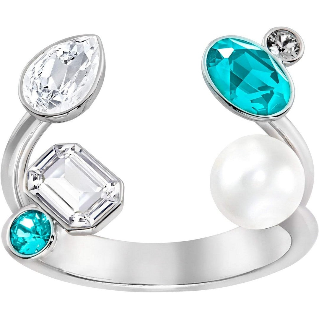 Con cristalli color pastello e perle di cristallo, l'anello aperto extra large mostra l'esperienza di Swarovski nel mescolare diversi elementi di design. Il metallo è placcato in rodio quindi non si ossida.