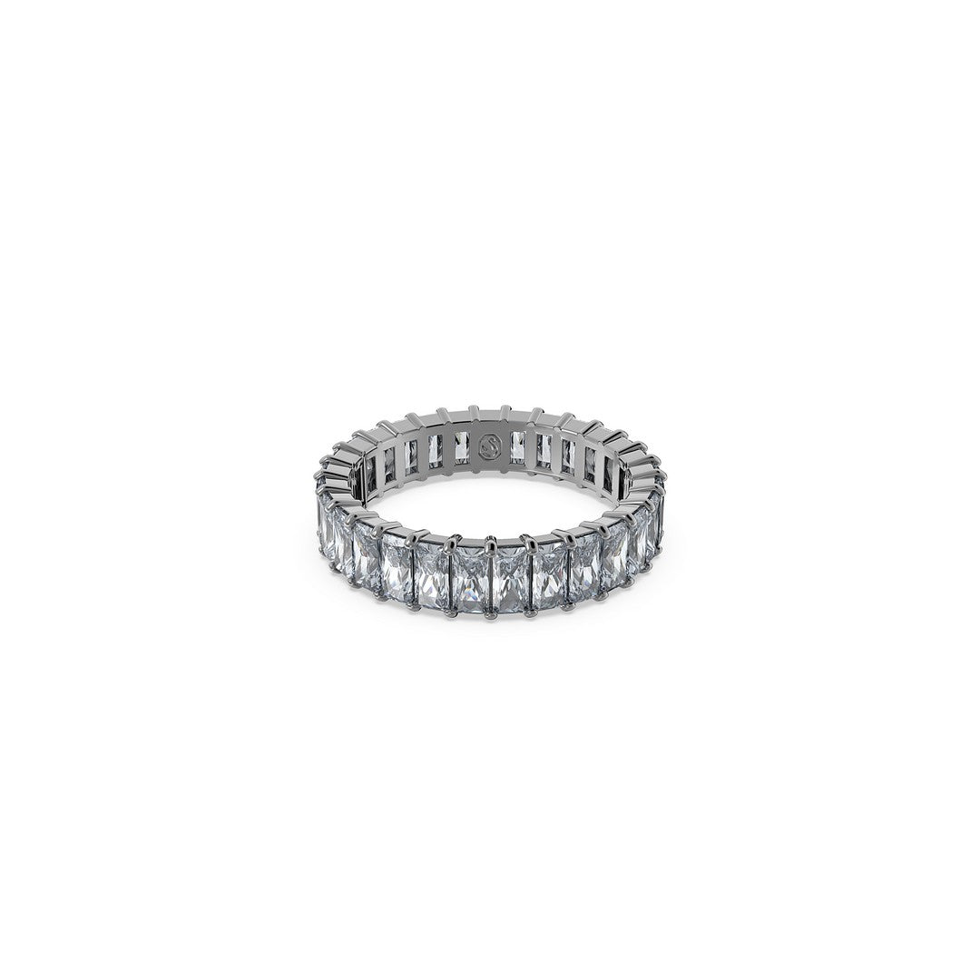 Anello Swarovski Matrix, Taglio baguette, Grigio, Placcato rutenio. Questo anello Matrix combina un intenso look metallico con un'affascinante brillantezza ed è un'aggiunta versatile al tuo portagioielli. Pietre grigie a taglio Baguette Princess sono incastonate su una fascia placcata rutenio, con una lavorazione charms unisce scienza e magia. Un accessorio affascinante, perfetto per essere sovrapposto ad altri gioielli e creare molteplici abbinamenti per tutte le occasioni.