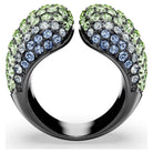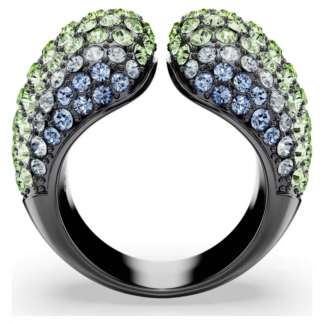 Abbraccia l'audace brillantezza di questo anello cocktail ispirato al mare. Il design in pavé unico è placcato rutenio e presenta una base in metallo bombata per aumentarne il volume, mentre il motivo Meteora, composto da cristalli di diverse misure, risplende con un affascinante effetto. Abbinalo a un pendente Sublima coordinato, per un look che ricorda le onde del mare.