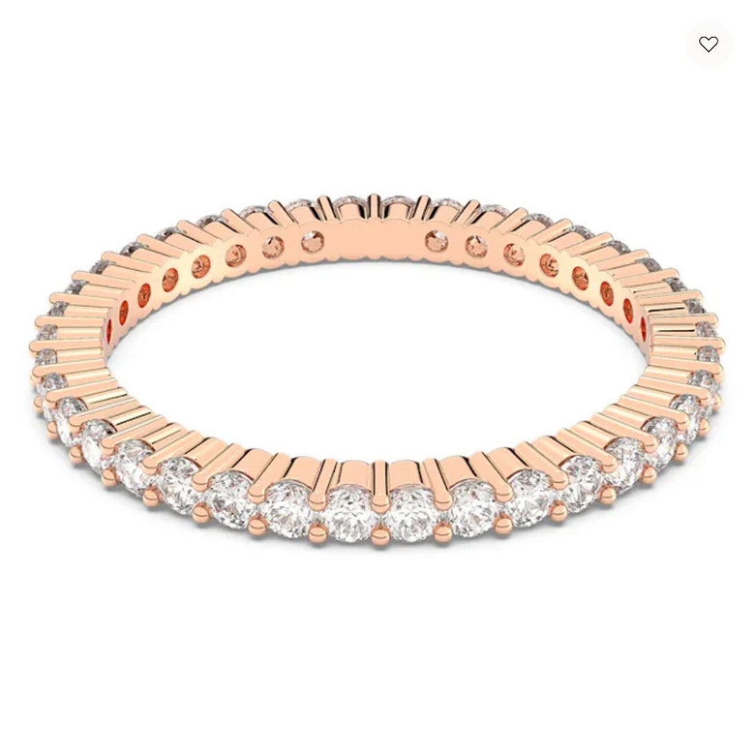 Anello da donna di Swarovski della collezione vittore. Anello con cristalli e placcatura oro rosa. Gioiello con chaton sull'intera circonferenza.