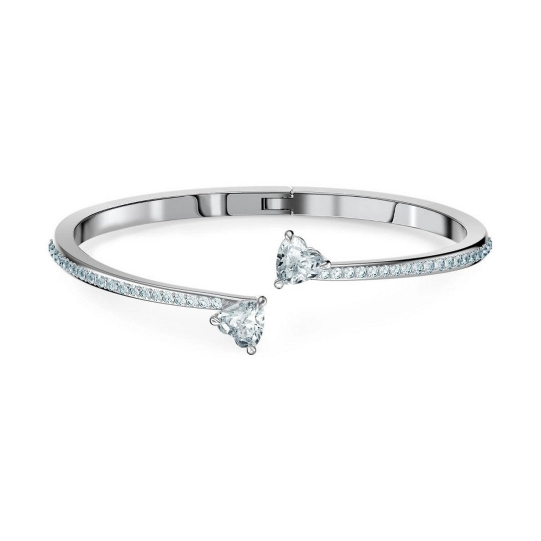 Fine semplicità e un tocco di romanticismo rendono questo bangle Swarovski l'idea regalo perfetta per una persona speciale. Il design rodiato risulta estremamente elegante e presenta due splendide pietre interconnesse a forma di cuore come elemento centrale. Uno stupefacente regalo per far risplendere gli occhi della tua persona amata.