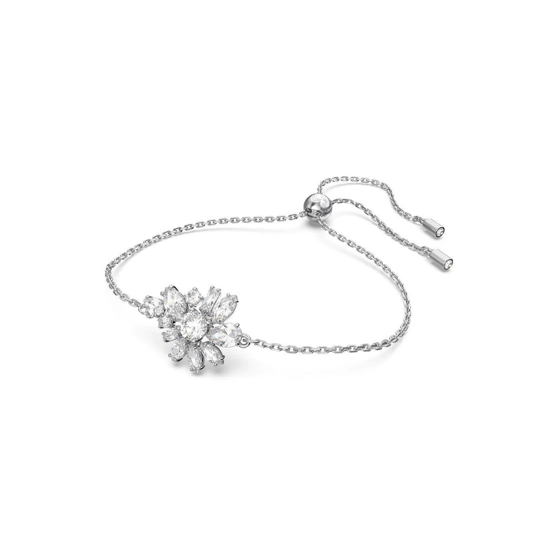 Bracciale catena della collezione Swarovski Gema da donna. Colore: argento. Il gioiello è in lega di metalli anallergica realizzato con pietre trasparenti trattenute da raffinate montature a griffe, con la sua catena placcata rodio. Chiusura a sfera scorrevole per adattarlo a ogni misura.