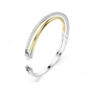 Braccialetto rigido realizzato in lega di metalli con finitura rodiata e dorata e impreziosito da cristalli swarovski.
