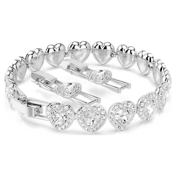 L'amore risplende luminoso in questo bracciale Swarovski, che porta la stravaganza romantica a un livello superiore. Il design placcato rodio presenta un cerchio completo di cristalli a forma di cuore, ognuno circondato da uno scintillante alone di pavé di cristallo Cry. Abbina questo bracciale ad altri gioielli coordinati per creare le tue combinazioni espressive.