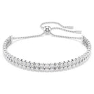 Questo intramontabile bracciale placcato rodio è l'idea regalo perfetta per gli amanti della luce. Due delicati fili di Swarovski Zirconia sono incastonati in un elegante design cupchain, che avvolge magnificamente il polso. Il gioiello è poi rifinito con un'innovativa chiusura a sfera scorrevole, che consente di regolarne le dimensioni per una vestibilità perfetta. Indossa questo bracciale per un tocco di raffinatezza per il giorno o per accendere il glamour di sera, abbinandolo a stili a contrasto.
