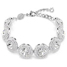 Avvolgi il tuo polso nella meraviglia di questo bracciale Swarovski che cattura la luce. La catena placcata rodio presenta un gancio a moschettone ed è impreziosita da una fila di significativi motivi a forma di angelo. Abbinalo ad altri gioielli della linea Una Angelic per un look di massima radiosità.