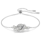 Questo bracciale intrecciato è pura espressione di luce e unità. Caratterizzato da una catena con meccanismo scorrevole regolabile, il motivo placcato rodio si ispira ad un nastro e presenta una decorazione intrecciata di Swarovski Zirconia taglio Baguette. Delicato ed elegante, è una scelta artistica da indossare insieme a gioielli coordinati della stessa famiglia.