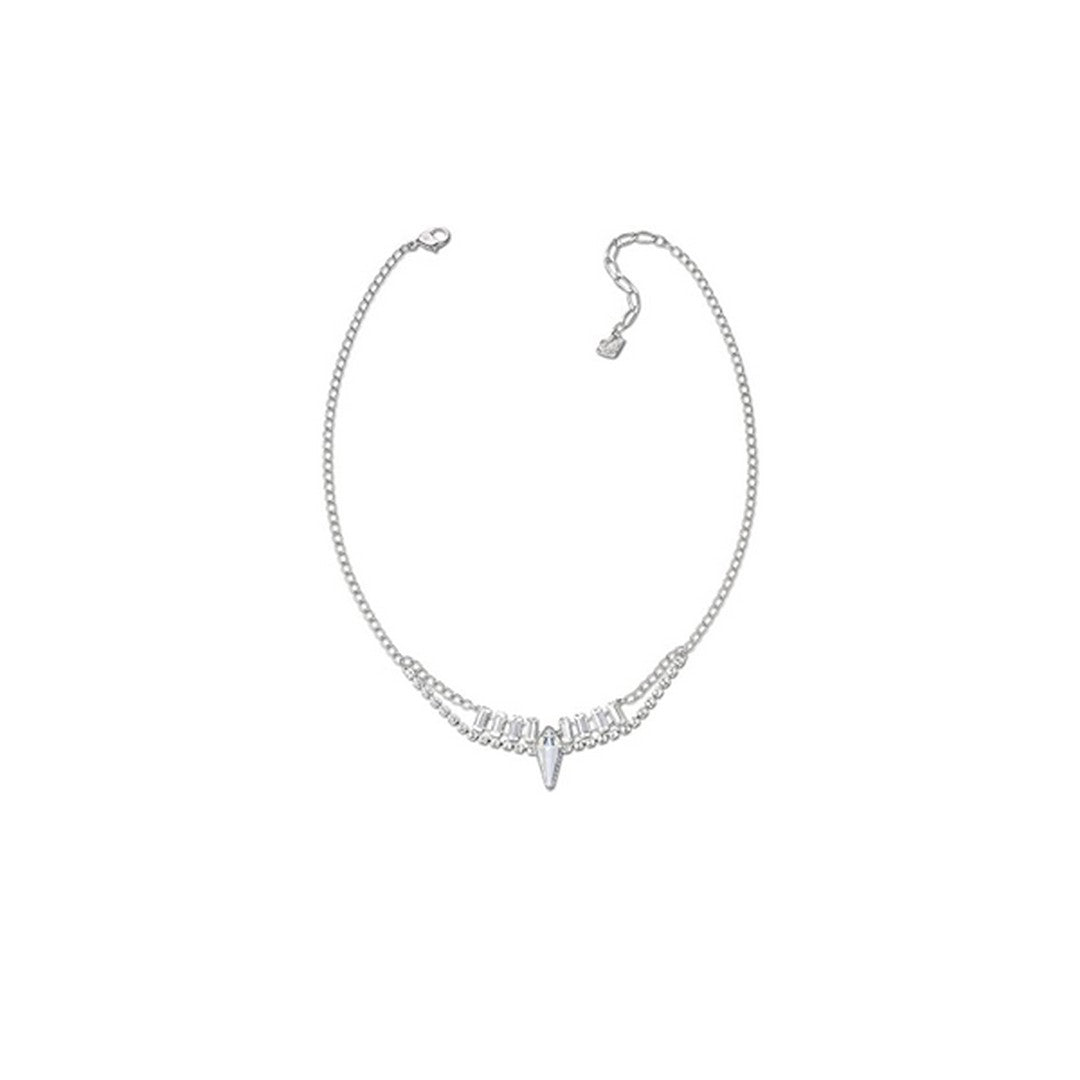 Questa collana placcata palladio cattura l'aspetto glamour e folcloristico. Presenta due diverse catene di coppe in cristallo trasparente, saldate insieme in modo molto raffinato. Realizzato in un taglio esclusivo, il centrotavola in Crystal Moonlight aggiunge un moderno bordo appuntito.