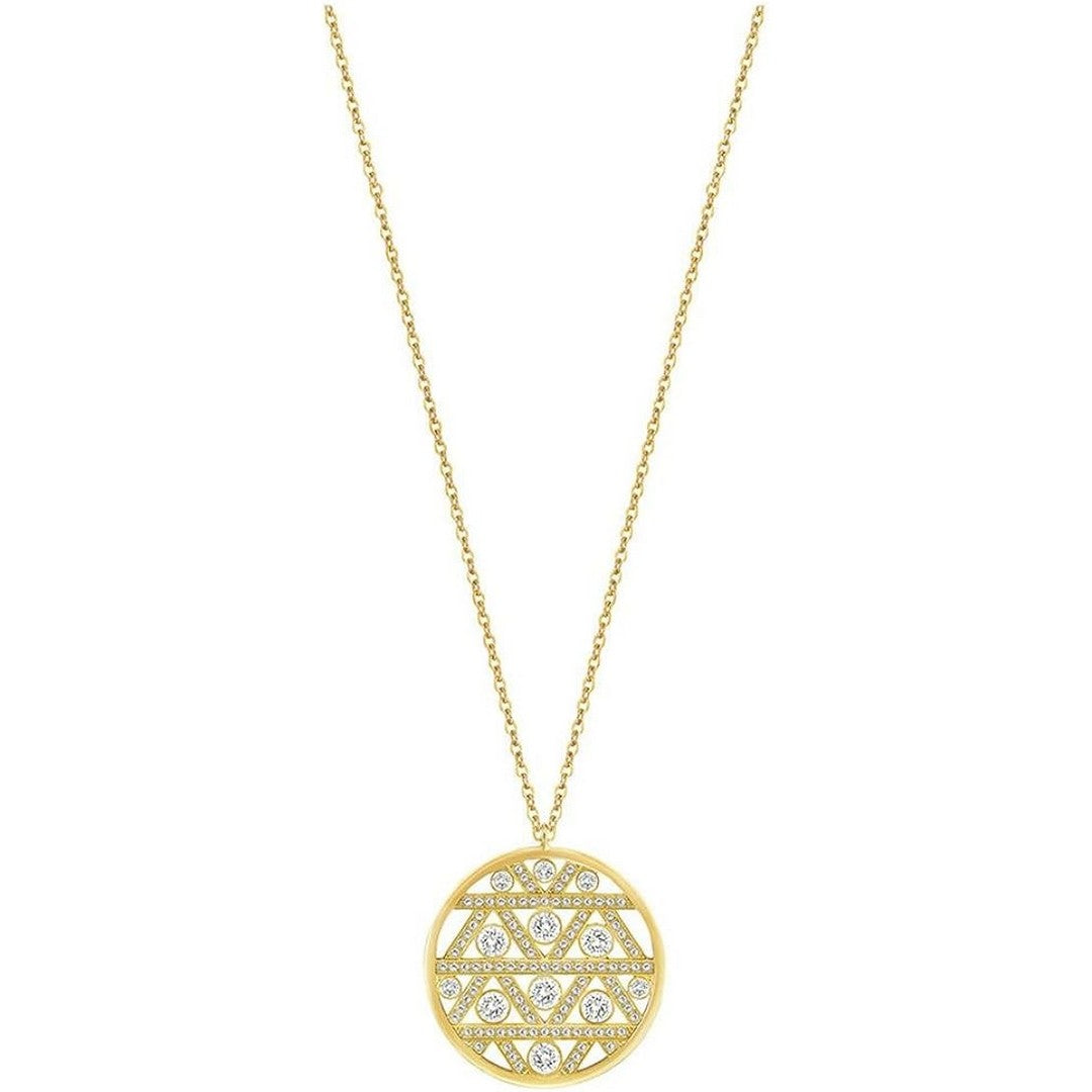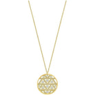 - Disco traforato con motivo geometrico come ciondolo, colore: oro, cristalli: bianco incolore