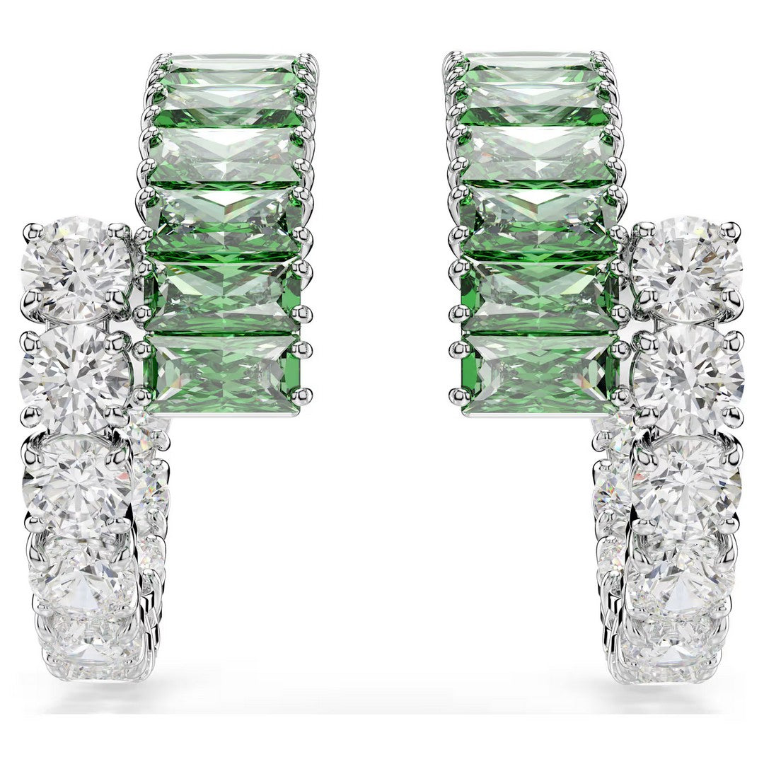 Questi lussuosi orecchini Matrix sono stati creati per una luminosità intensa. Ogni piccolo cerchio è placcato rodio e presenta un design sovrapposto con Swarovski Zirconia trasparenti e verdi con tagli Round e Baguette incastonate. Una scelta gioiosa per uno stile da giorno e da sera, questi orecchini possono essere abbinati a un anello o a un bangle coordinati per accentuare il colore del tuo stile.