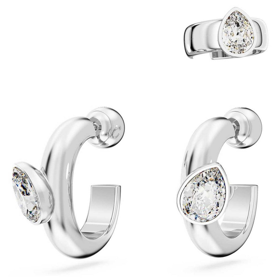 Orecchini a cerchio di Swaroski con ear cuff di Swarovski, Set di Swarovski (3), con cristalli, con placcatura in rodio, di colore bianco.Dimensione: 2.2 x 2.2 cm. La referenza è 5671192