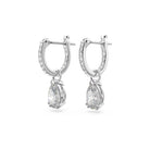 Pensati per catturare la luce da ogni angolazione, questi squisiti orecchini diventeranno presto i tuoi preferiti. Pietre trasparenti taglio Pear sono sospese da su cerchi placcati in rodio decorati con pavé sfavillanti. Indossali con i capelli raccolti insieme ad altri gioielli della famiglia Millenia.