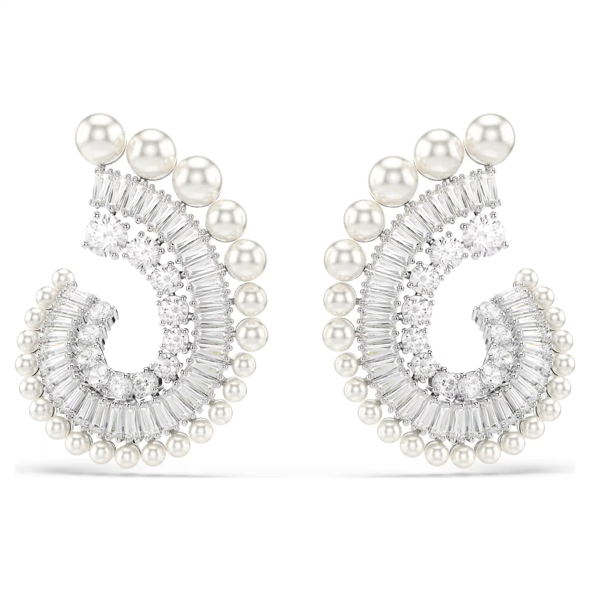 Infusi del savoir-faire di Swarovski, questi straordinari orecchini a buco sono un modo ultramoderno per elevare qualsiasi outfit. Ciascuna creazione placcata rodio presenta una spirale aperta di Swarovski Zirconia taglio Round e Baguette in una gradazione di dimensioni. Sulla sezione esterna, il design è completato da una gradazione di Crystal Pearls Swarovski, che conferiscono un tocco lussuoso e accattivante. Un paio di orecchini luminosi e splendidi, facilmente abbinabili ad altre creazioni della stessa famiglia creativa.