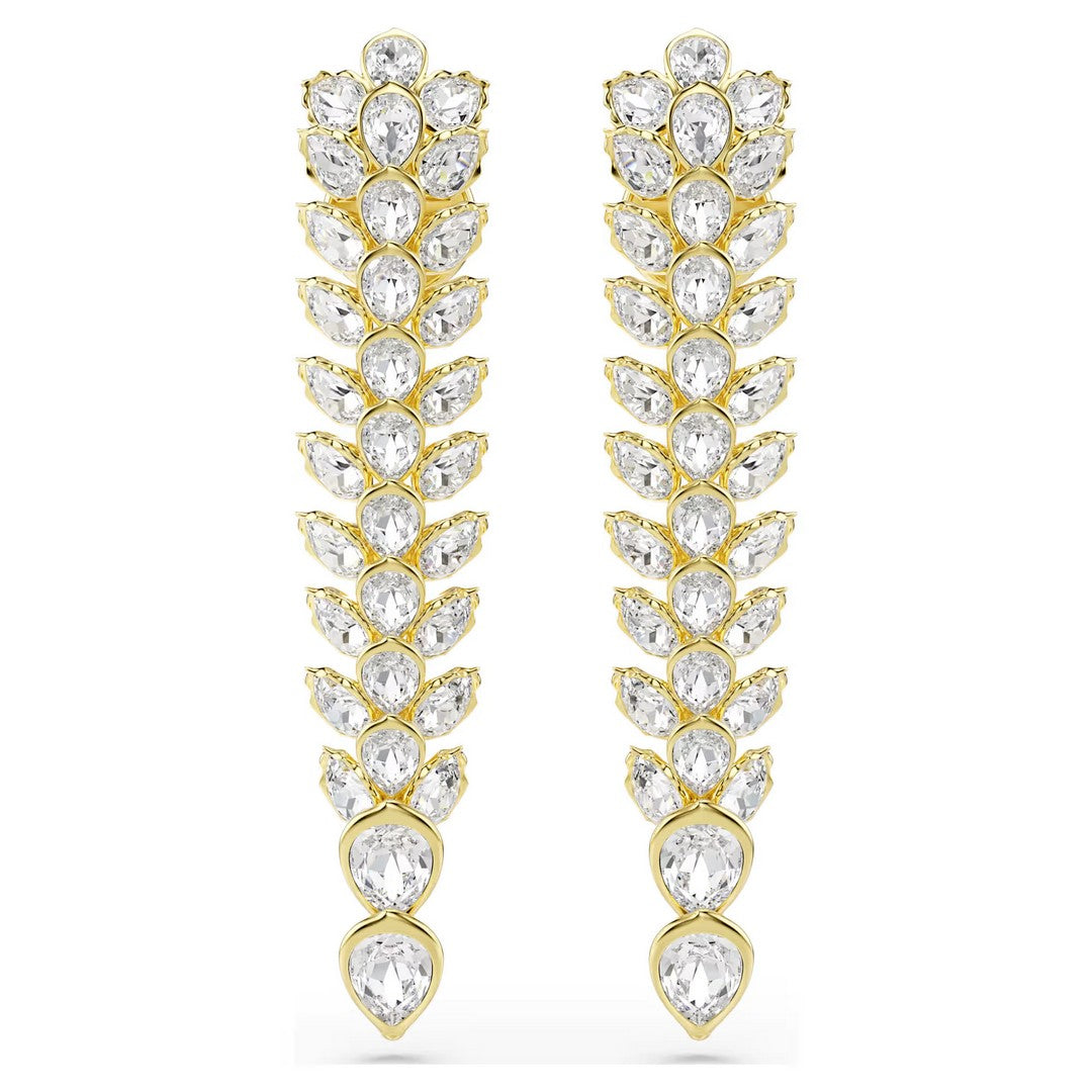Accendi il tuo stile con la piena luminosità di questi orecchini lunghi Idyllia. Ciascuna creazione placcata in tonalità oro segue l'espressivo motivo del fogliame, con una cascata di cristalli con montatura a castone. Aggiungendo un effetto straordinario alle tue occasioni più glamour, questi orecchini sono l'esempio definitivo del savoir-faire di Swarovski e si abbinano perfettamente a un girocollo o a un bracciale coordinati.