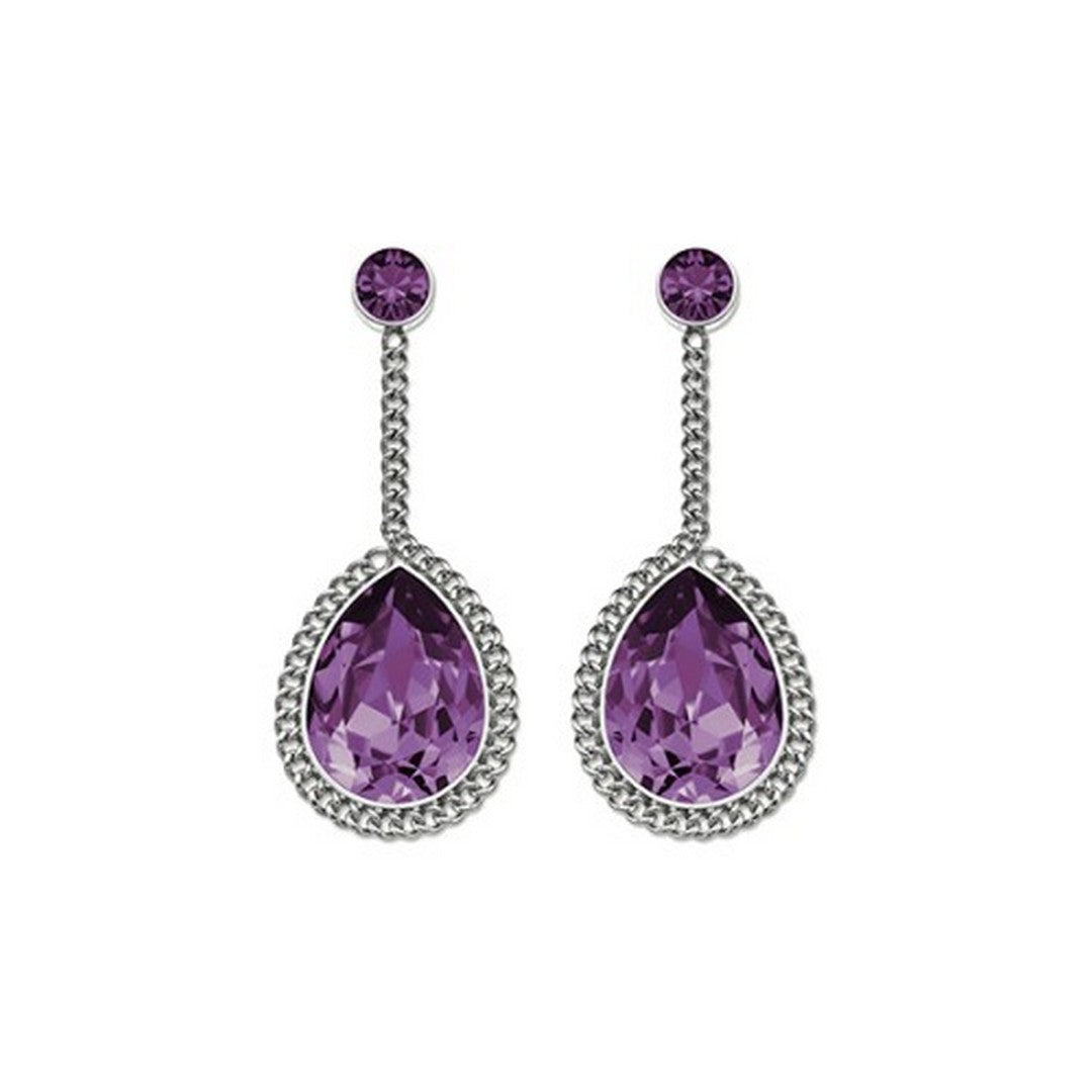 Orecchini Swarovski Smoothly Small a buco, realizzati in acciaio inossidabile, realizzati con un cristallo di ametista in una montatura a castone.