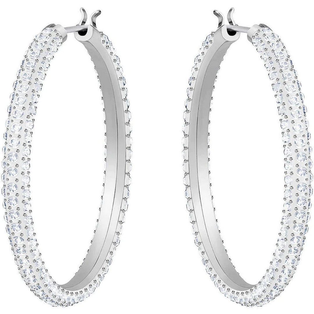 Trova il regalo perfetto per la Festa della Mamma o qualsiasi altra occasione con questo paio di cerchi d'altri tempi, decorato con pavé di cristallo, per richiamare lo speciale scintillio firmato Swarovski. Il delicato design rodiato è facilmente indossabile con ogni outfit, dal giorno alla sera.