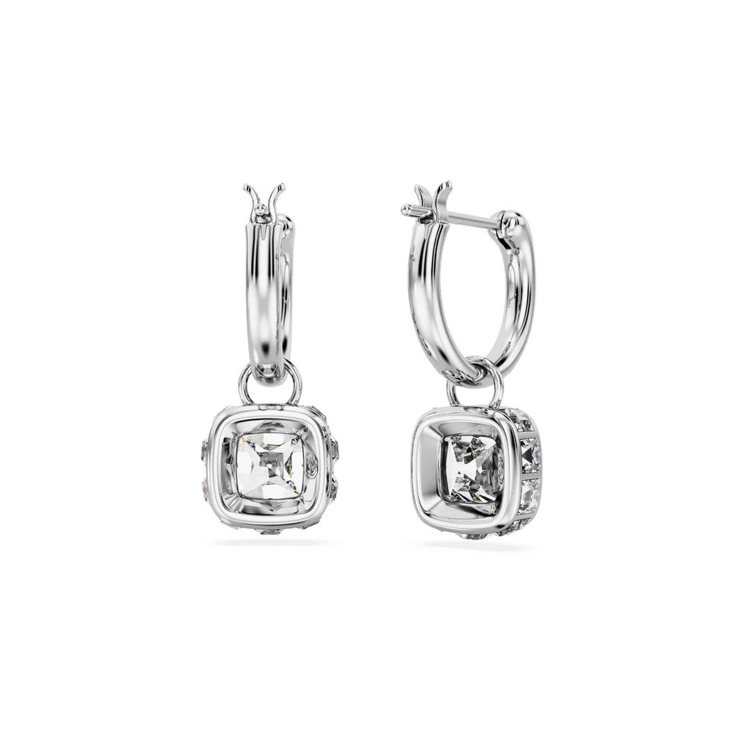 Orecchini pendenti di Swarovski, taglio squadrato , con placcatura in rodio Zirconia, di colore bianco.Dimensione: 2 x 0.8 cm. La referenza è 5662919