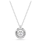 Questo accattivante pendente Dextera è un inno alla bellezza del movimento. Sospeso su una delicata catena con gancio a moschettone, il design placcato rodio presenta un cerchio centrale, per metà tempestato da un pavé di cristalli Cry, con una Swarovski Zirconia danzante posizionata al centro. Abbinalo ad un set coordinato di orecchini per un look all'insegna della "Joyful Extravagance".