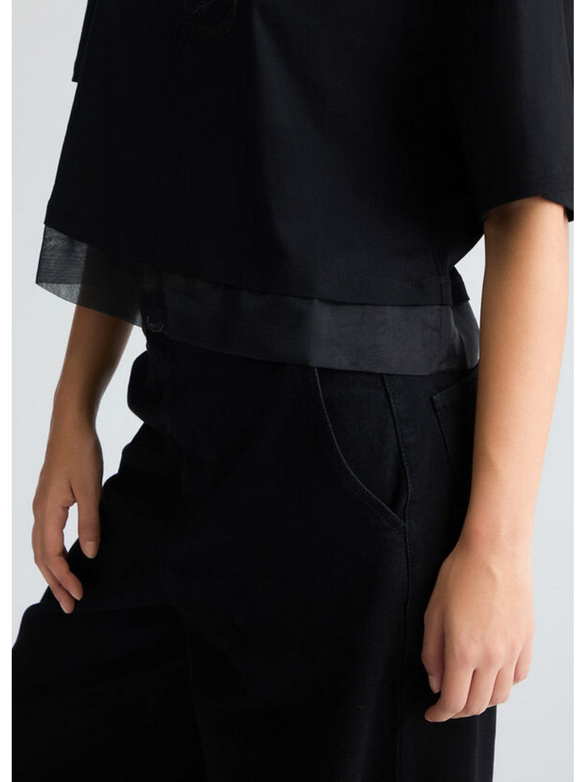 Trasparenze sinuose e un tocco city-chic: questa t-shirt Liu Jo Better conquista per la silhouette comoda e gli inserti in organza. Un modello esclusivo che dona risalto anche ai look più casual.