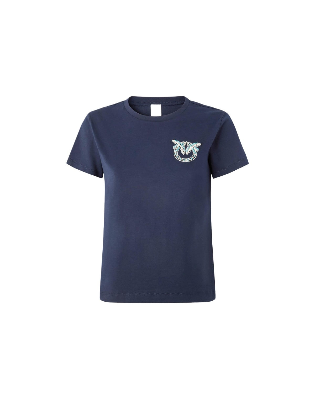 T-shirt Donna Pinko - T-shirt maniche corte con ricamo gioiello Love Bir - Blu