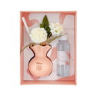 La confezione regalo del mini diffusore color pesca con fiori è elegante e raffinata. Il design delicato avvolge il diffusore in una scatola dalle tonalità morbide, con un delicato fiore che richiama la freschezza. Il tutto è pensato per offrire un'esperienza sensoriale unica, perfetta come bomboniera o per un regalo speciale e raffinato.
