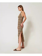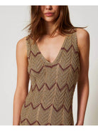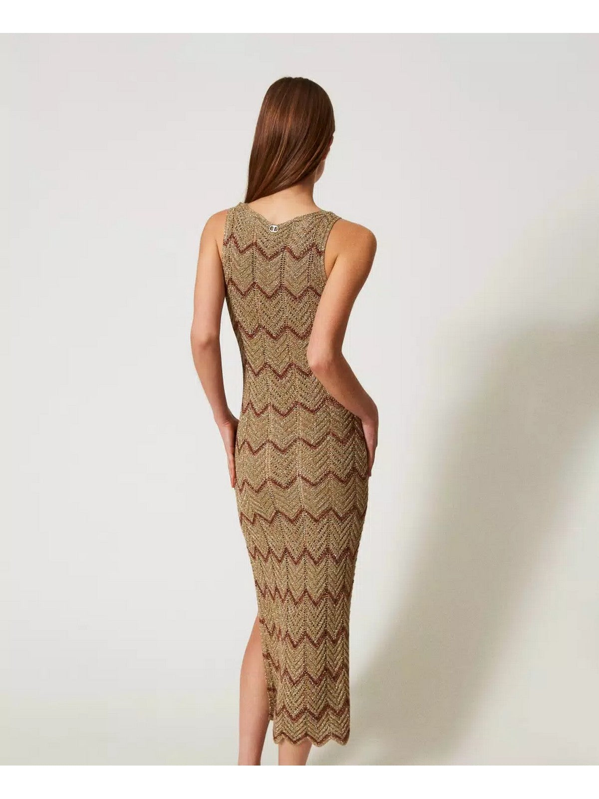 Abito longuette TWINSET in maglia di misto viscosa lurex con lavorazione punzonata a disegni geometrici bicolore