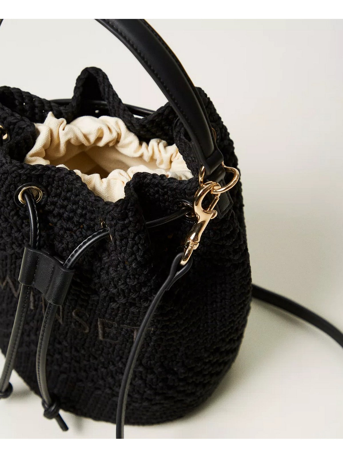 Borsa a secchiello TWINSET in cotone con lavorazione crochet realizzata a mano su forma di legno
