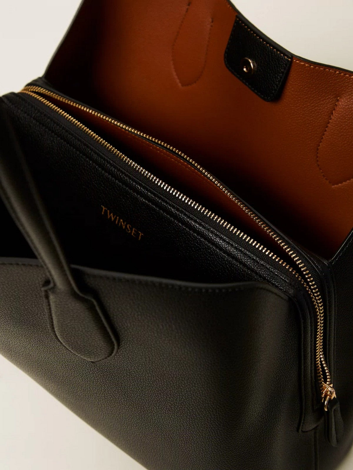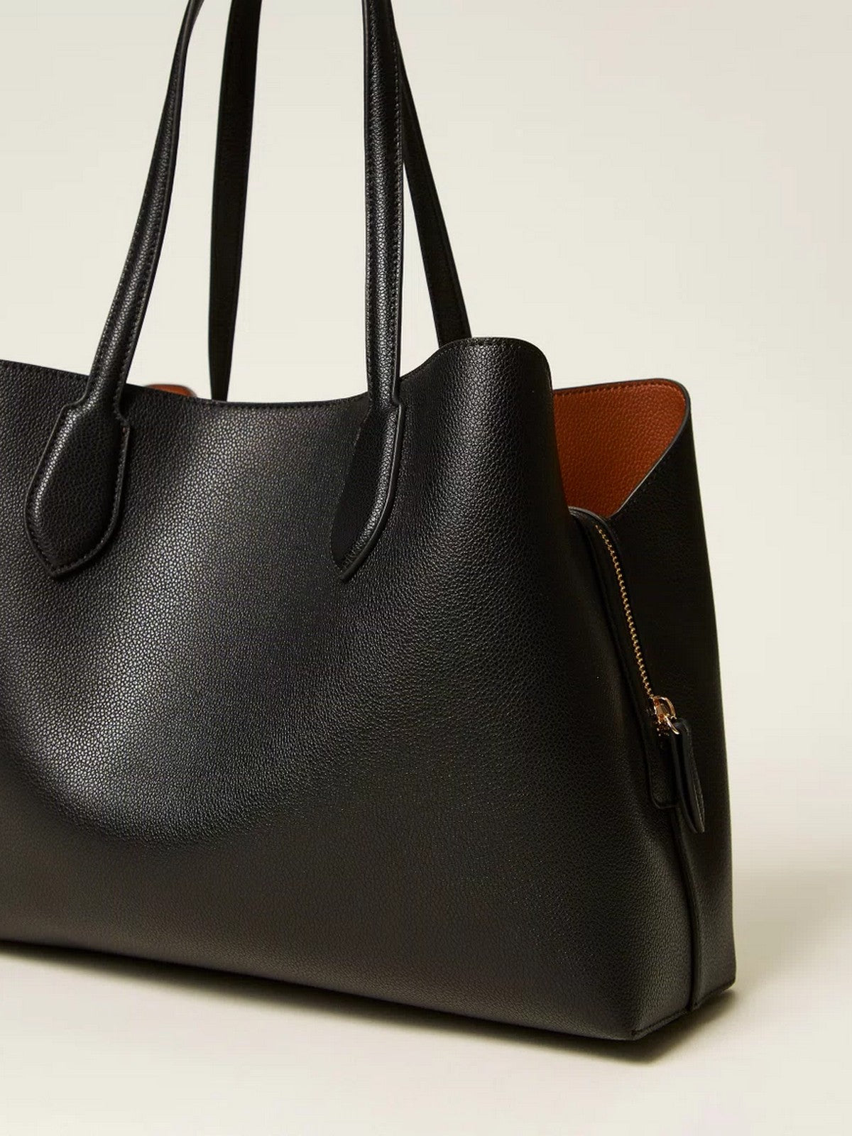 Borsa shopper TWINSET effetto pelle di vitello con grana naturale, doppiata con effetto bicolore.