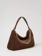 Borsa hobo 'Liliane' TWINSET realizzata in pelle scamosciata con trattamento anti stingimento. Il corpo è realizzato a colonna con un rinforzo in microfibra, con logo impresso a caldo, e foderato con un twill in misto cotone.