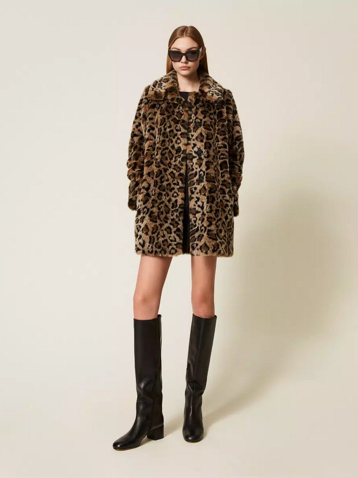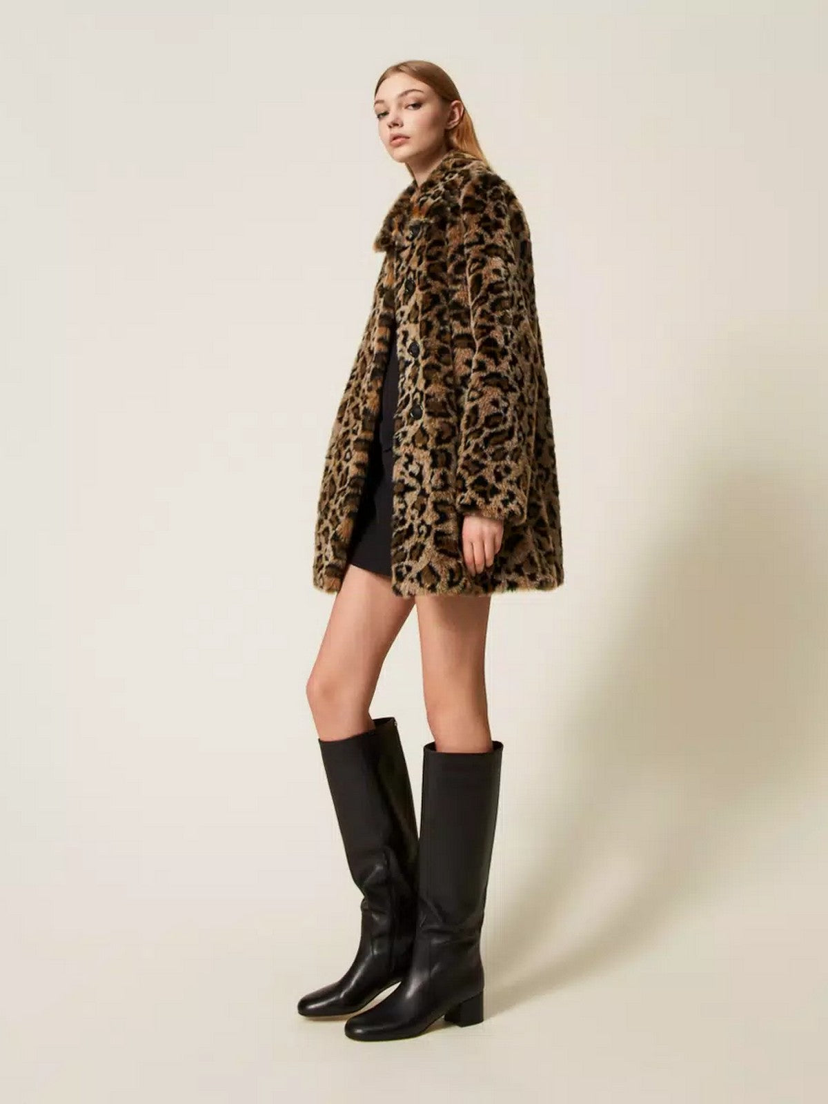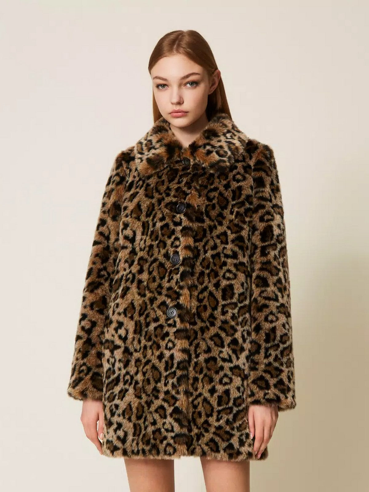 Cappotto TWINSET in pelliccia sintetica jacquard a disegno animalier.