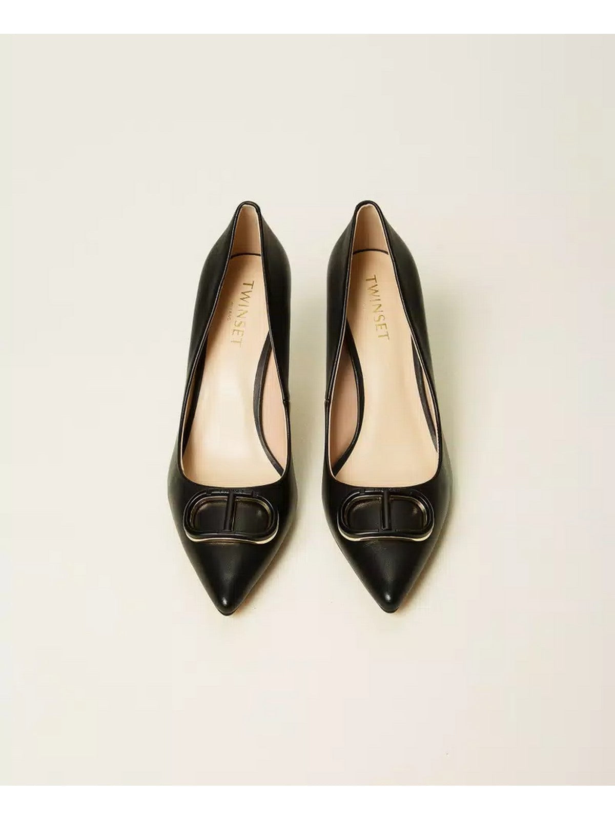 Décolleté TWINSET in pelle con Oval T smaltato in tono