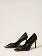 Décolleté TWINSET in pelle con Oval T smaltato in tono
