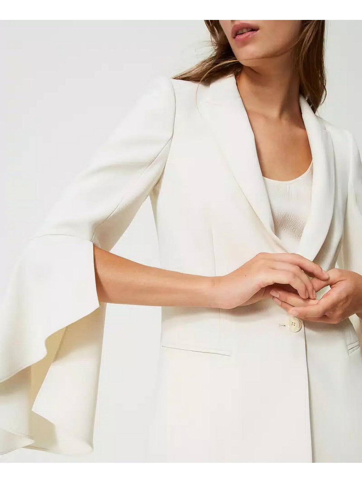 Giacca blazer TWINSET in crêpe cady. Collo con revers a lancia, maniche lunghe con balze in sbieco al fondo. Chiusura monopetto con bottone.