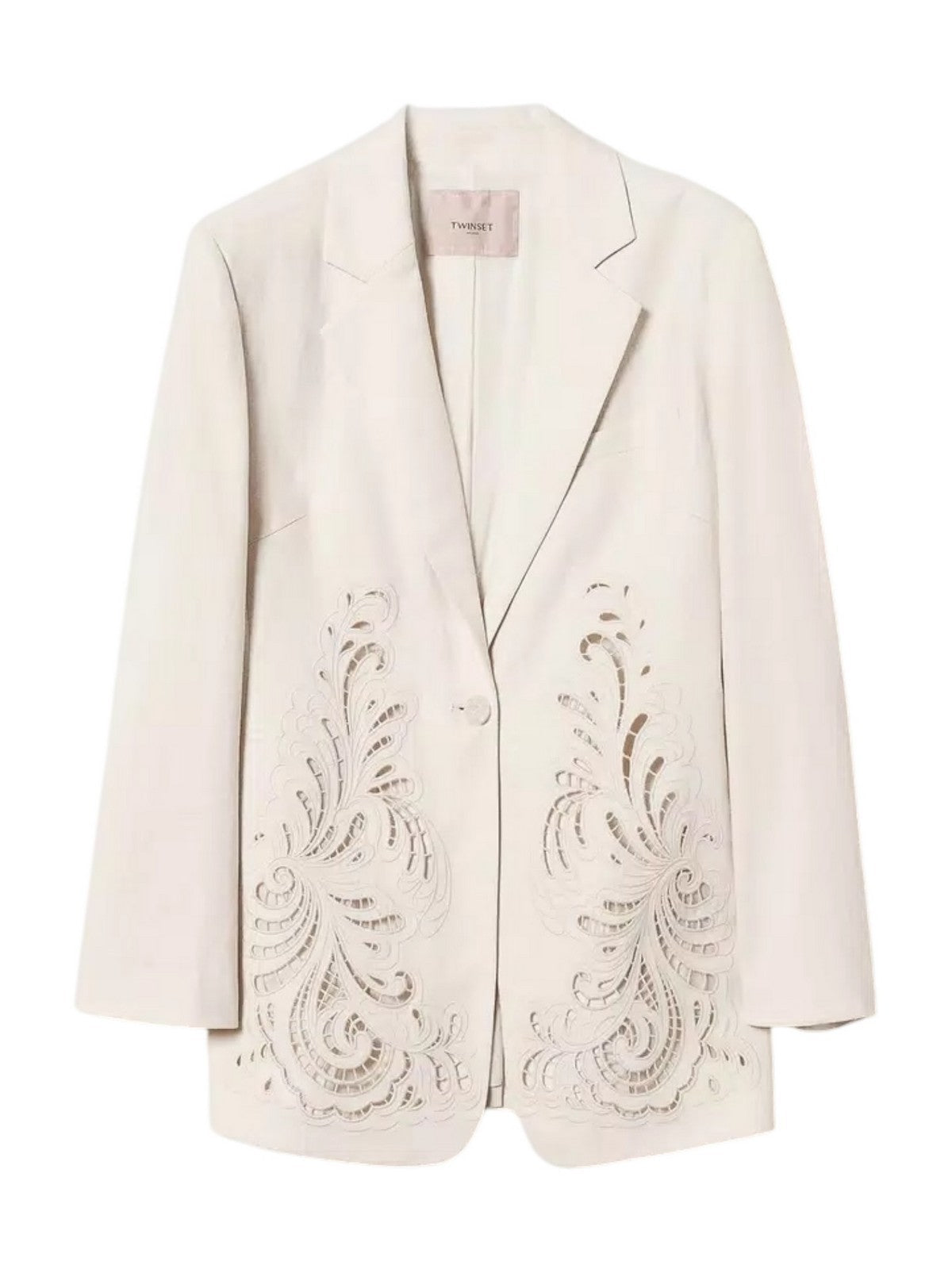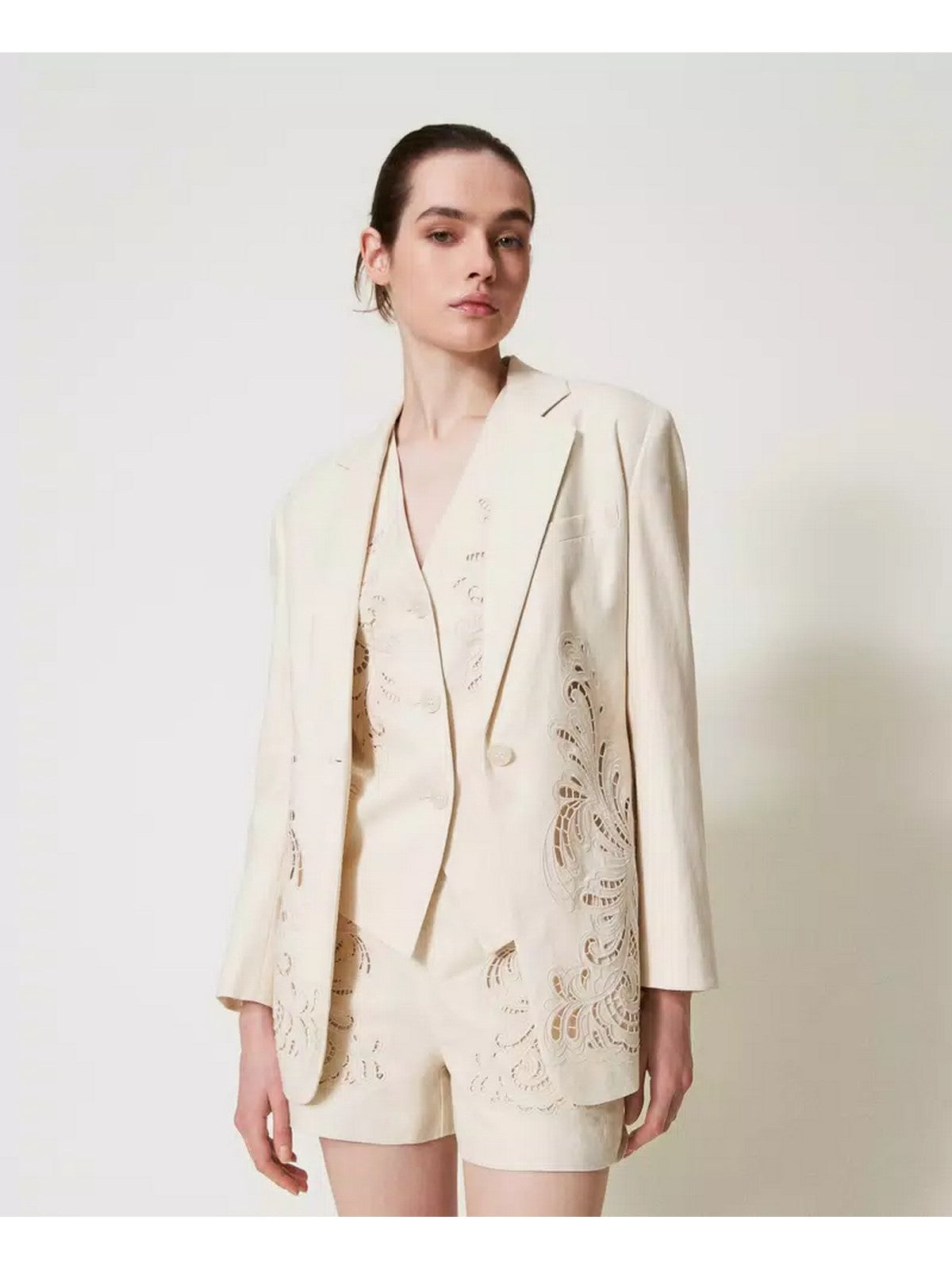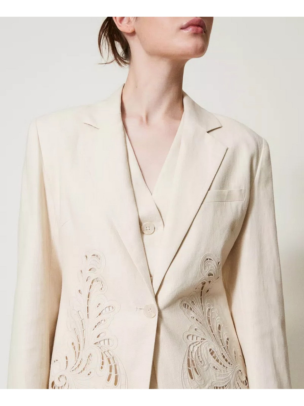 Giacca blazer TWINSET in tessuto a navetta con armatura tela in lino e viscosa, dalla mano fluida