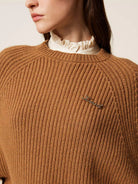 Maglia a mantella TWINSET in misto lana e viscosa con spilla logo rimovibile. Ha lavorazione a punto pannocchia.