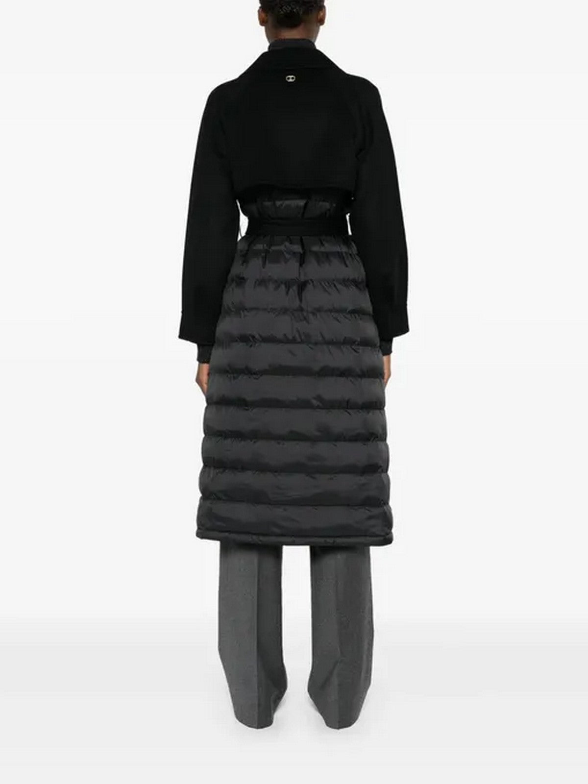 Cappotto TWINSET doppiopetto, si fonde armoniosamente con la parte inferiore trapuntata per un effetto contemporaneo e sofisticato.