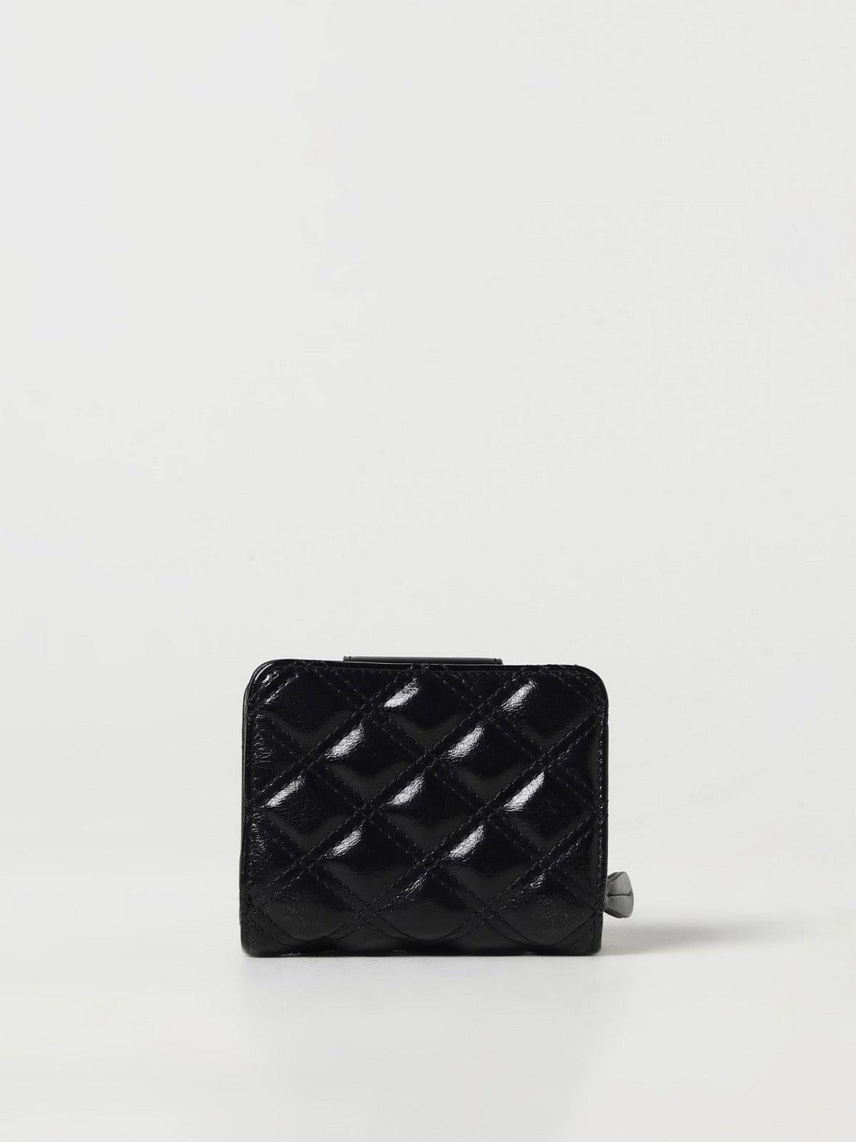 Portafoglio TWINSET trapuntato effetto lucio. Chiusura con pattina e bottone automatico. Logo oval-t in metallo. All'interno scomparti per banconote, documenti e carte business. Scomparto con zip per monete.