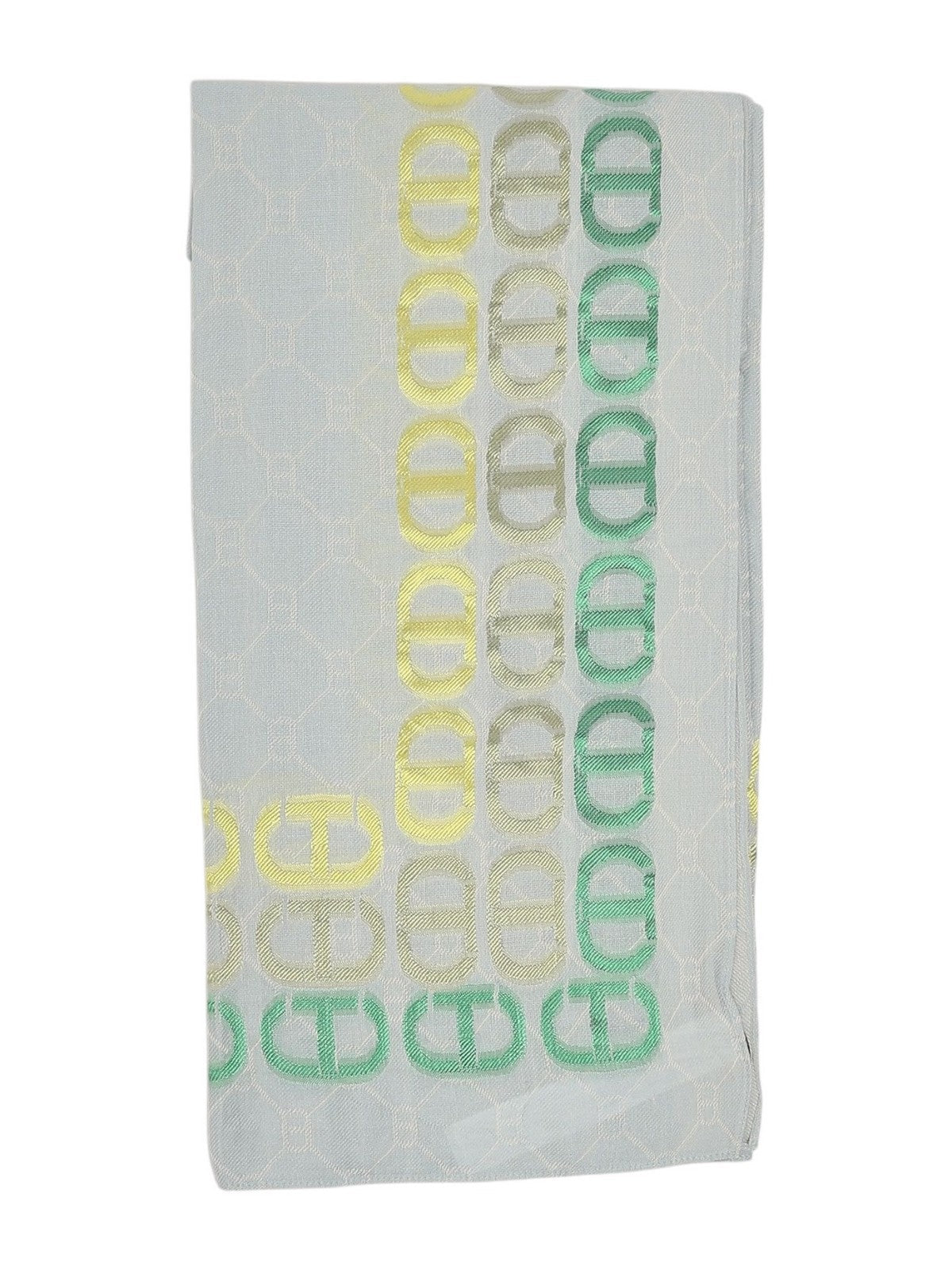 Kefiah TWINSET in misto viscosa jacquard lucido e opaco con Oval T all over multicolor in dégradé.