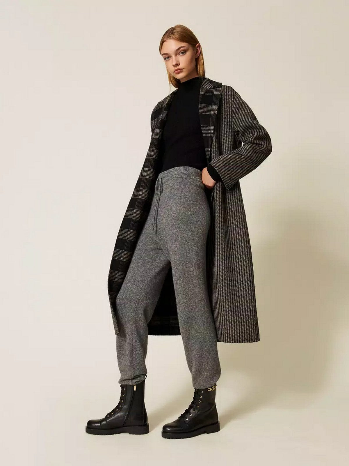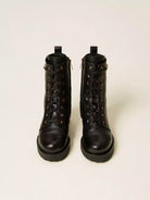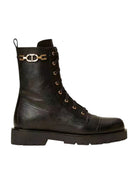 Anfibi TWINSET in pelle con inserto in catena e Oval T in metallo al fianco
