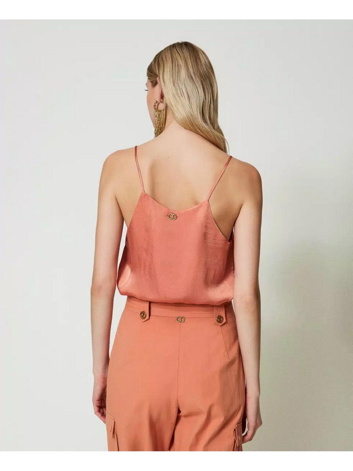 Top TWINSET in raso di viscosa tinta unita. Scollatura a V profonda sorretta da spalline sottili, scollatura all'americana sul retro. Linea dritta. Placchetta logo Oval T in metallo sul retro.
