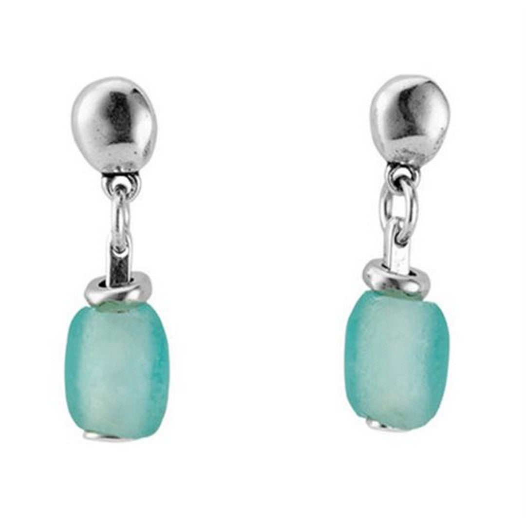Eleganti orecchini con chiusura a bottone, immersi nell'argento e abbinati ad un pezzo di vetro fatto a mano in blu pastello. Un gioiello semplice da indossare tutti i giorni che aggiungerà un tocco di colore ai vostri outfit. Prodotto in Spagna da UNOde50 e prodotto a mano.