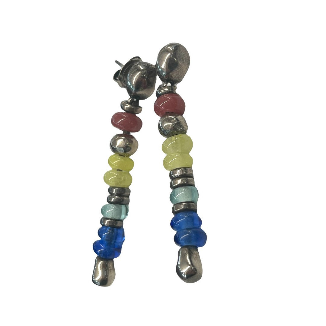 Orecchini in lega metallica rivestito in argento e pietre naturali multicolor.