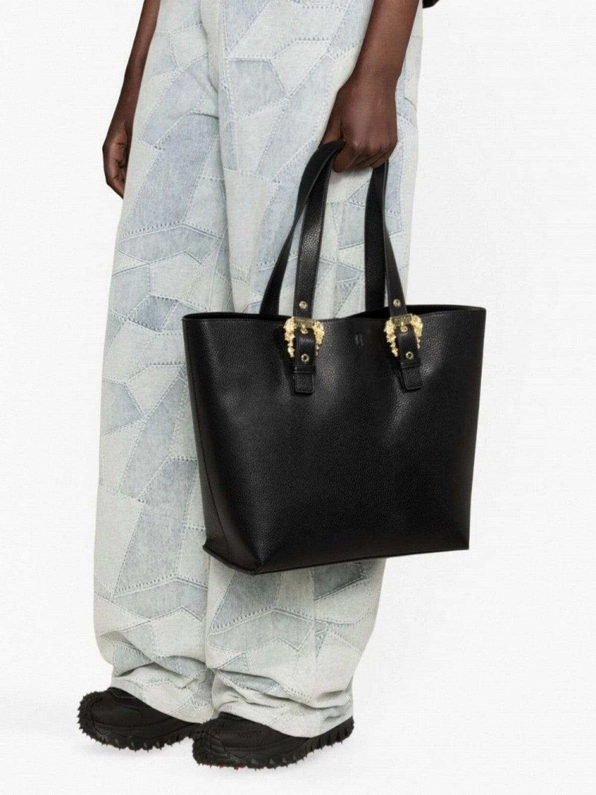 Borsa VERSACE JEANS in similpelle tinta unita. Due manici da spalla caratterizzati da fibbie baroque. Chiusura con gancio.